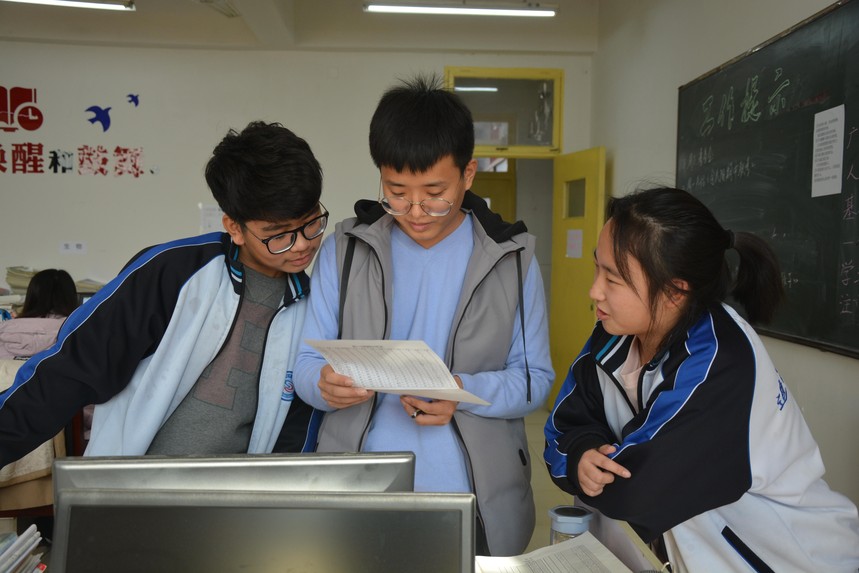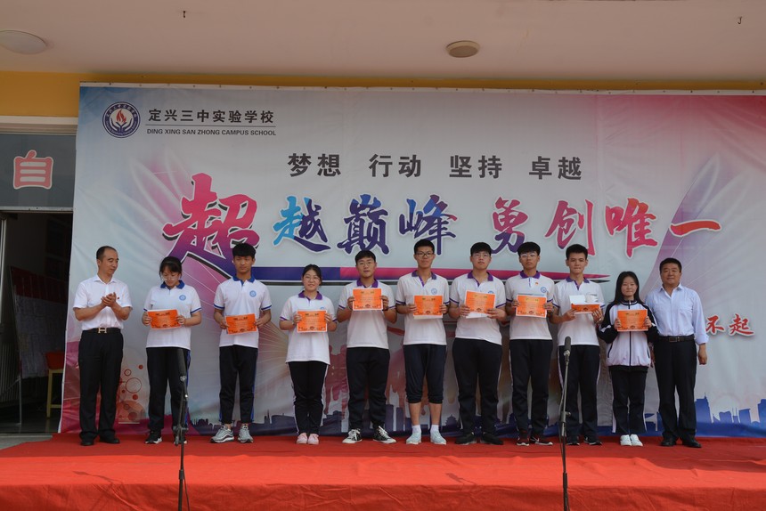 高三年级经过三年的培养让中考成绩只有400多分的学生在保定市摸底统测中实现了80%的本科上线率,其中理科人数在同系列学校中位列第一,文科位列第五。高二年级在保定市期末统测中,成绩优秀。24名同学经过层层选拔,参加了在北京举行的美国数学竞赛。